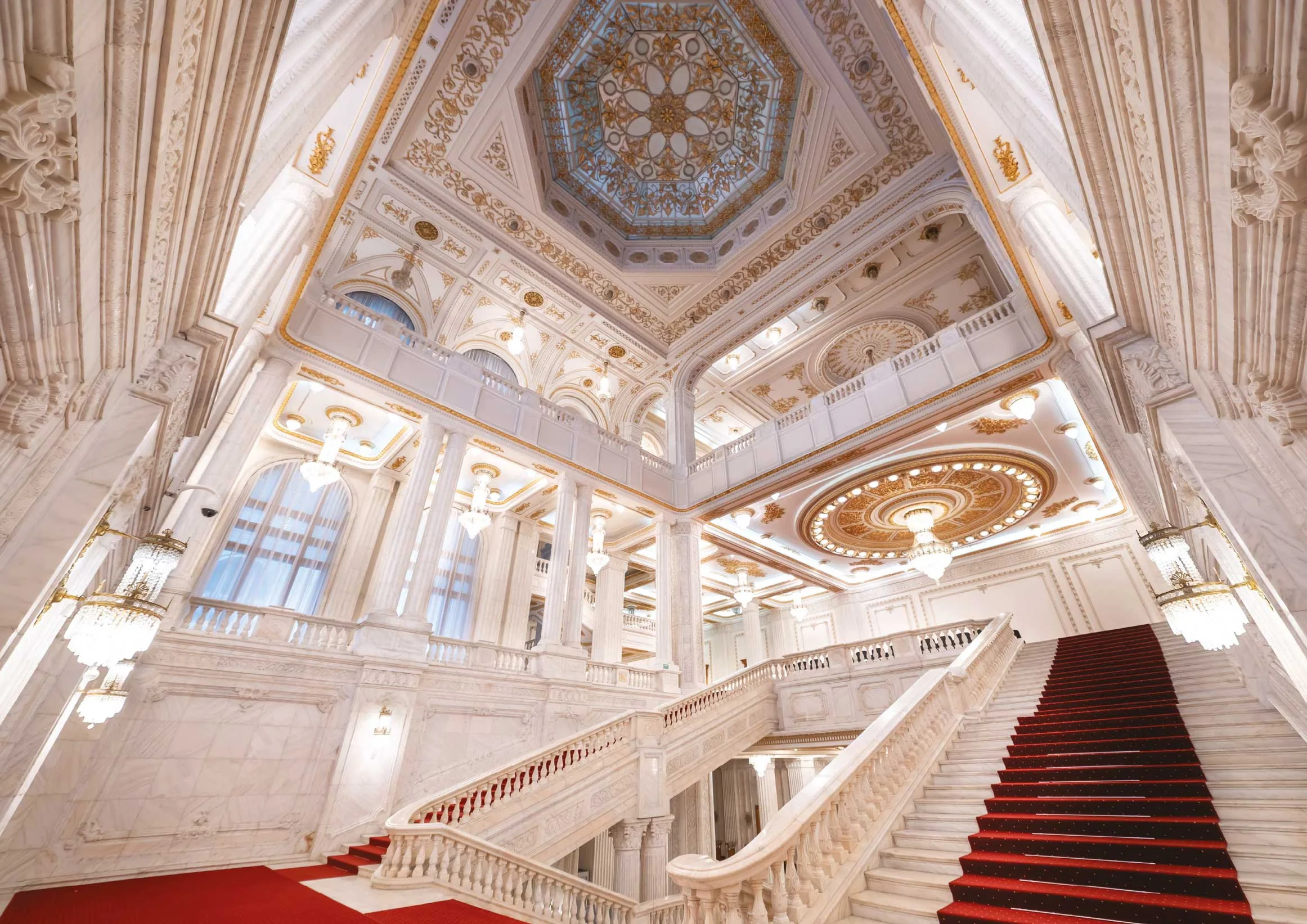 Palatul Parlamentului – una dintre cele mai mari clădiri administrative din lume. Construit din marmură, sticlă și oțel la scară monumentală, observabil din aproape orice punct al capitalei.